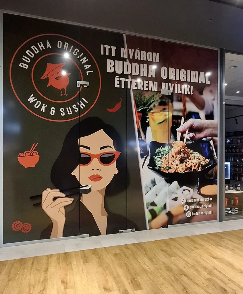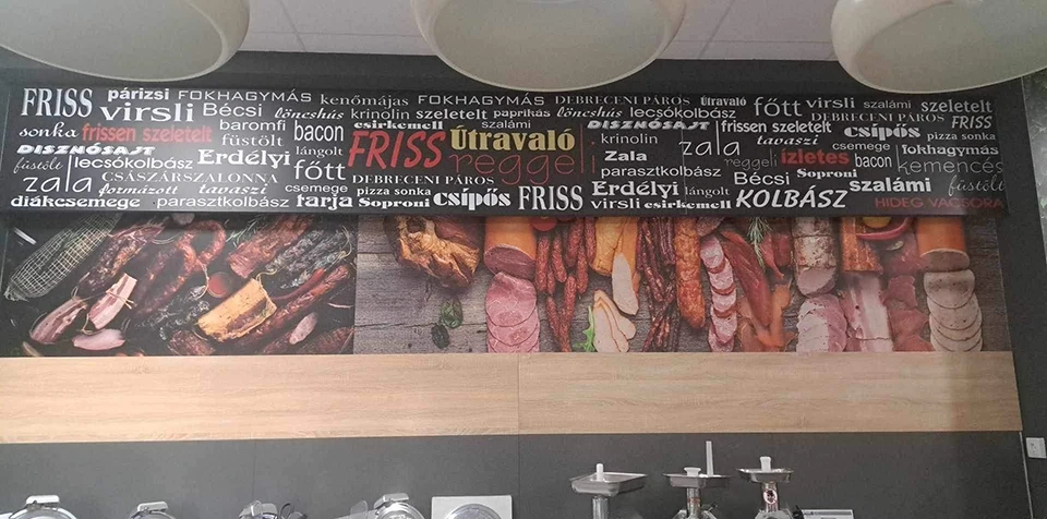 - Beltéri dekoráció – fal-, pult- és vitrinmatricák, információs vagy irányító táblák, látványos falgrafikák és installációk.