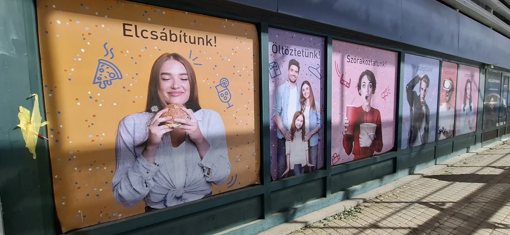 - Kültéri reklámdekoráció – molinók, táblák, homlokzati elemek, tartós kültéri fóliázások és világító feliratok.
